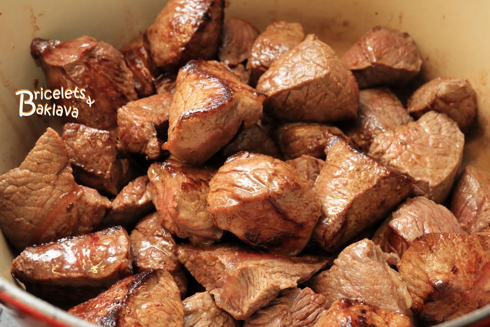 Ici j’ai choisi la méthode vraiment la plus simple à réaliser et certainement la plus goûteuse car la viande de bœuf aura été rôtie avant d’être mijotée. Après une longue cuisson à tout petit feu, la viande va devenir fondante et la sauce corsée et onctueuse. Certains rajoutent un peu de vin rouge dans la préparation, celui-ci aide à l'attendrissement de la viande et donne une petite pointe d'acidité pas désagréable.