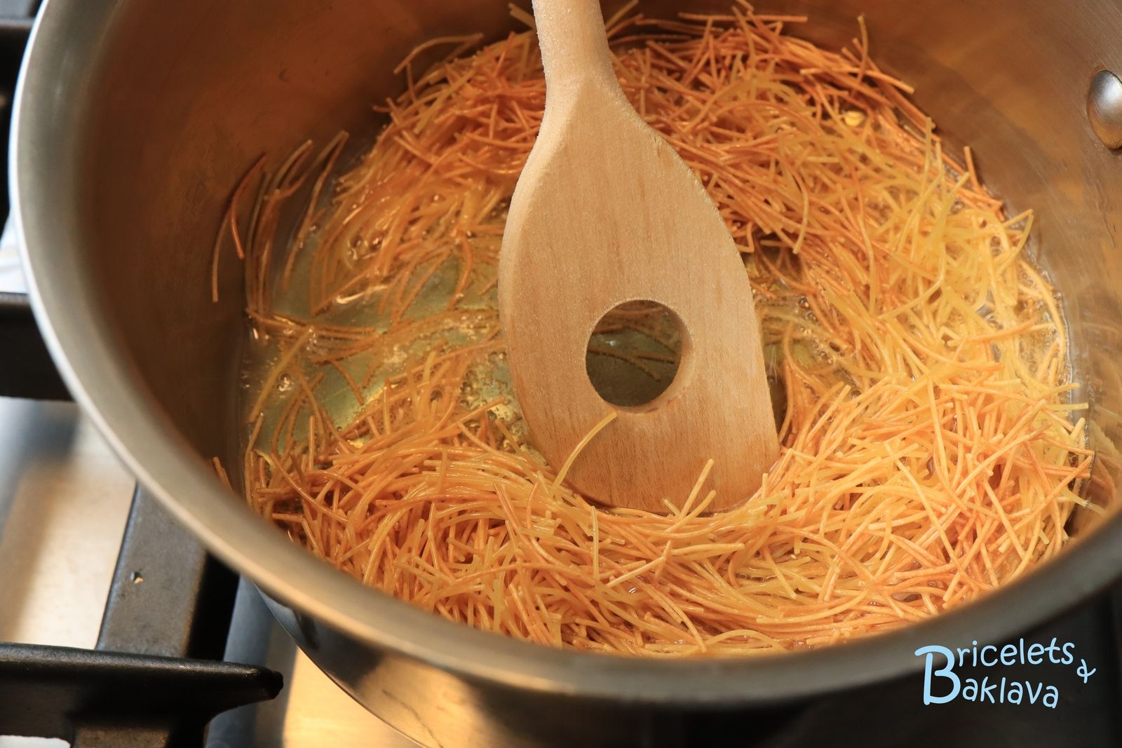 Dans une sauteuse à fond épais, chauffer la matière grasse et faire revenir à petit feu les vermicelles