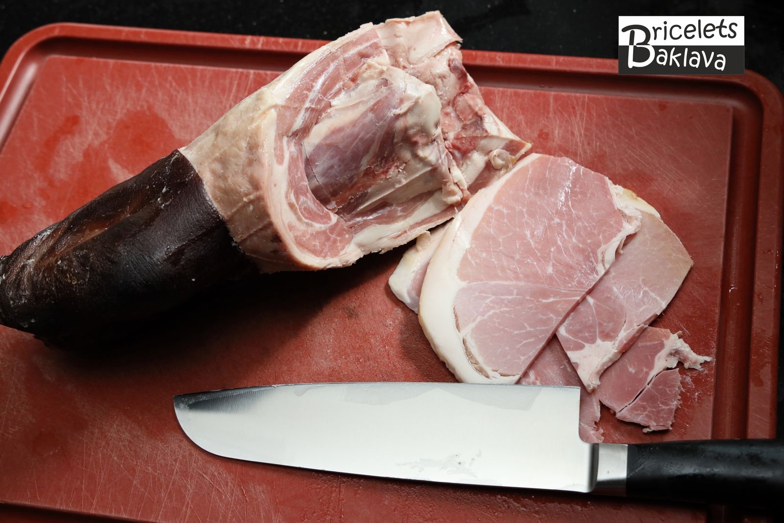 Préparer votre jambon, ici j'ai pris un manche de jambon à l'os pour sa chair bien ferme et marbrée.