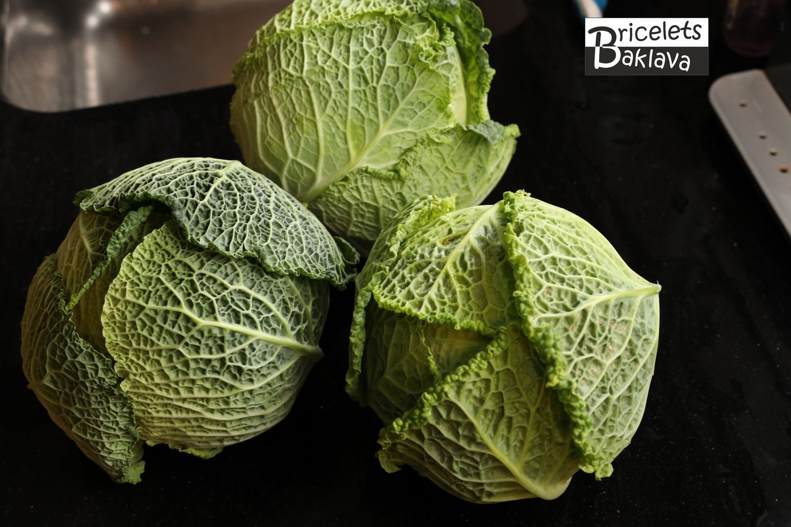 Dans une grande casserole, porter à ébullition 2 à 3 litres d’eau salée et y plonger les feuilles de chou pour les blanchir ceci afin de les assouplir. La durée sera de 5 à 6 minutes pour les feuilles extérieures, celles qui sont bien vertes et 4 à 5 minutes pour les suivantes, moins vertes, presque blanches.
