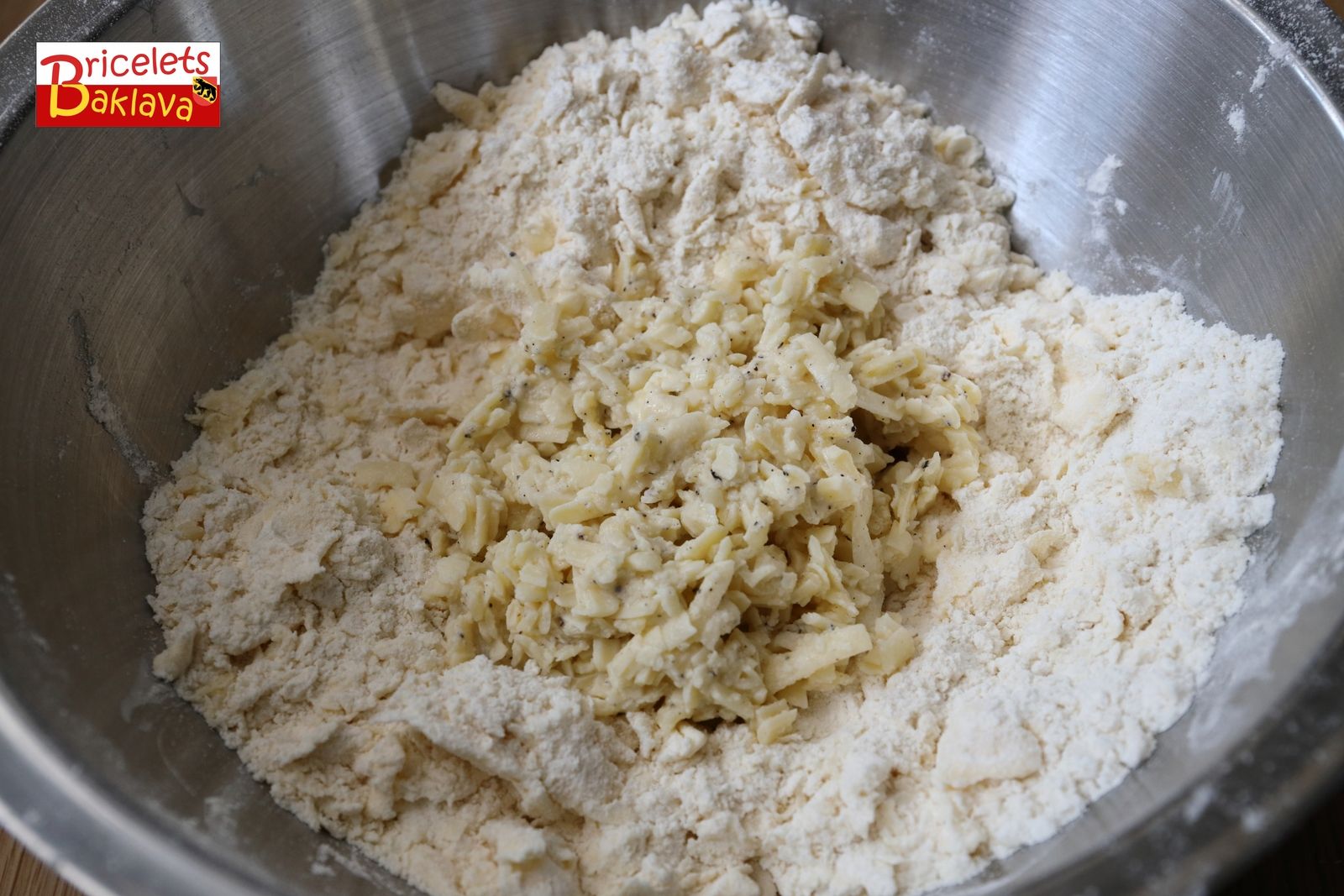 Aujourd’hui il existe un ustensile appelé « Girolle » qui nous fait très bien ce travail. Mais pour réaliser ces feuilletés, pas besoins de girolles, mais double sacrilège, on va découper le fromage à la verticale et ensuite le râper à la grosse grille pour ensuite lui faire prendre un bain de chasselas bien mérité.