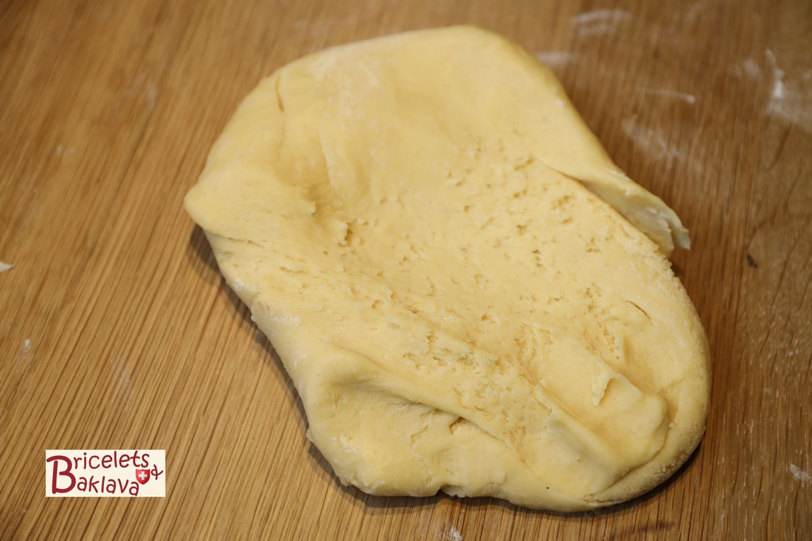 Transférer la pâte sur le plan de travail puis la fraiser à la paume de la main 2 à 3 fois pour la rendre homogène et lisse.