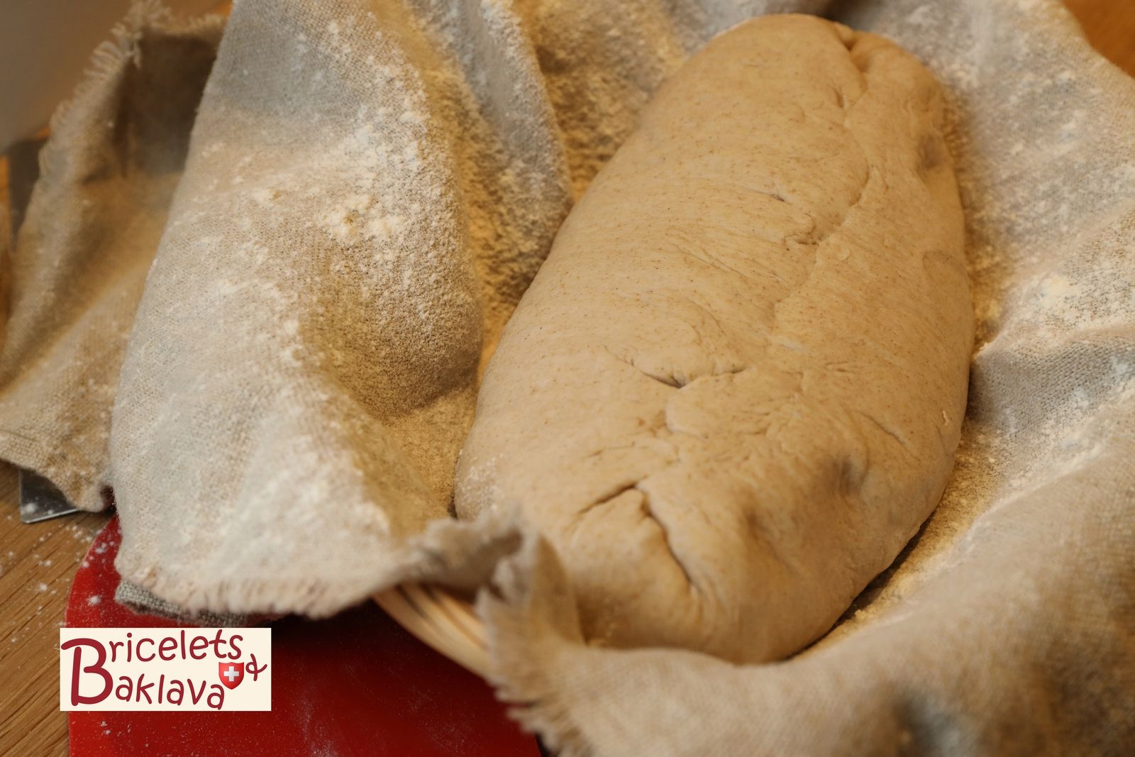 Déposer les pains soudure en dessus sur un torchon fariné ou mieux dans un banneton (corbeillon) recouvert également d’un torchon fariné.