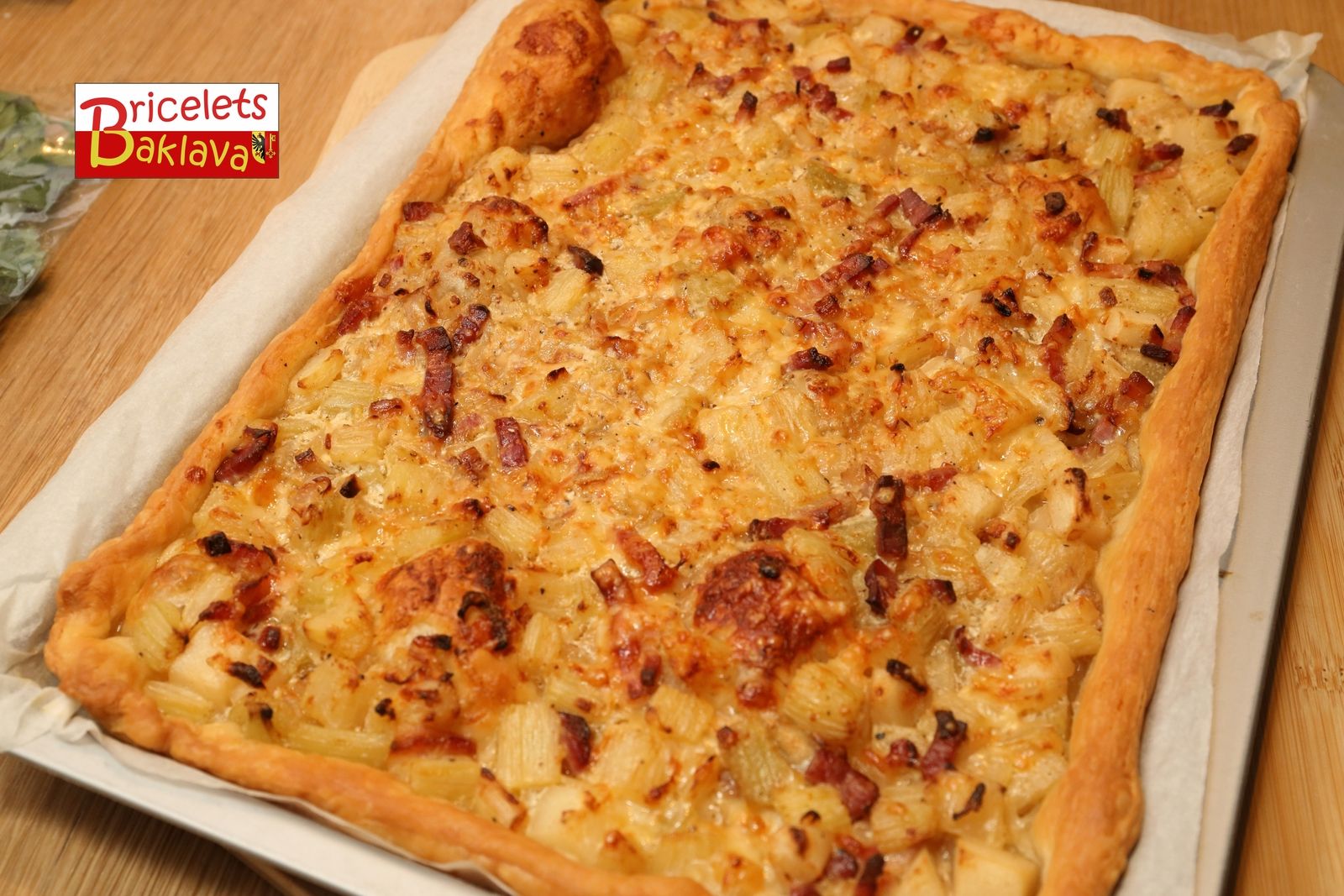 Recette pour une tarte de 30 cm de diamètre ou une plaque rectangulaire de 25 x 35 cm, 6 à 8 personnes, en entrée