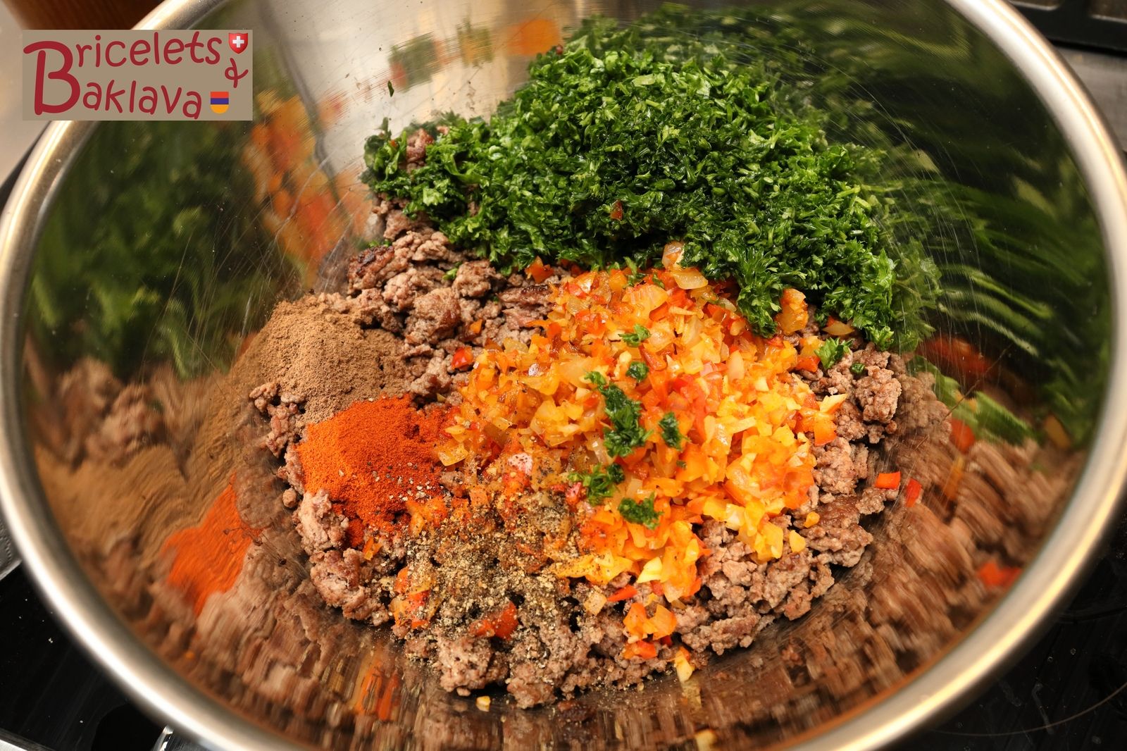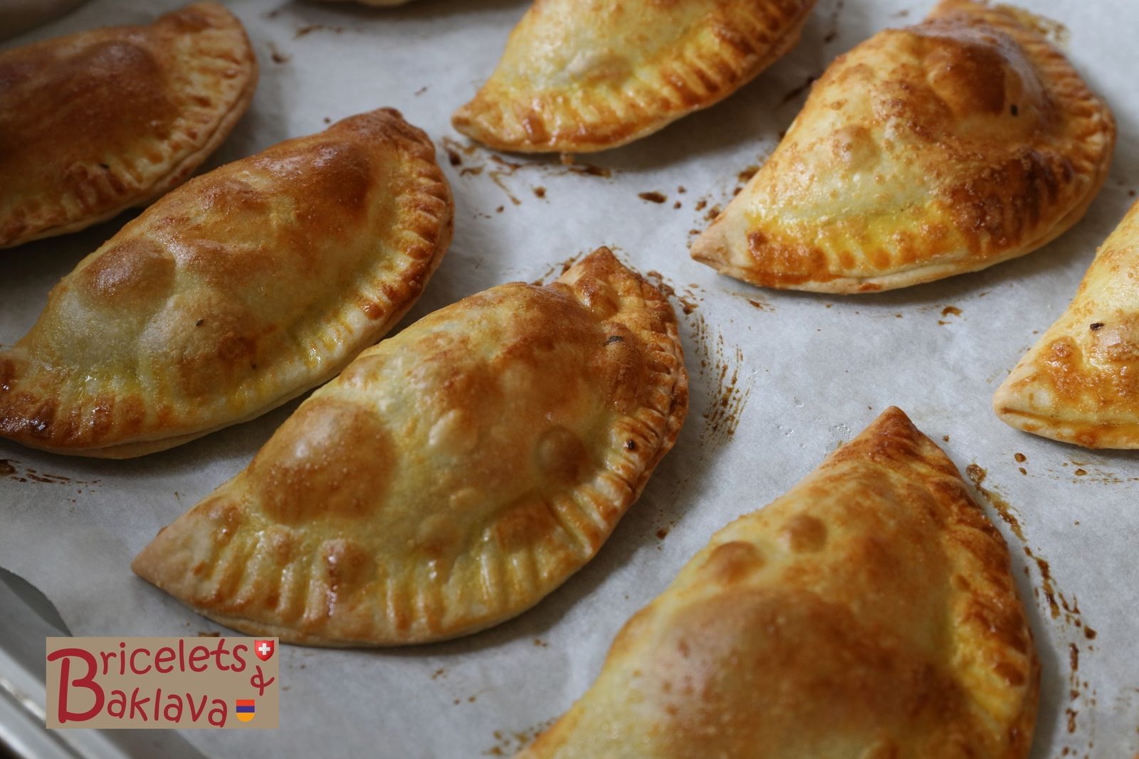 La recette que je vous propose est celle que faisait ma mère. Elle est tirée de son vieux livre de cuisine arménienne. Je suppose que cette façon de faire est vraiment la méthode ancestrale. Une simple pâte, farine, matière grasse, eau et fourrée de divers ingrédients, comme le fromage, légumes, viande, pommes de terre. La cuisson était réalisée soit au tonir (four) ou alors dans un bain d’huile.