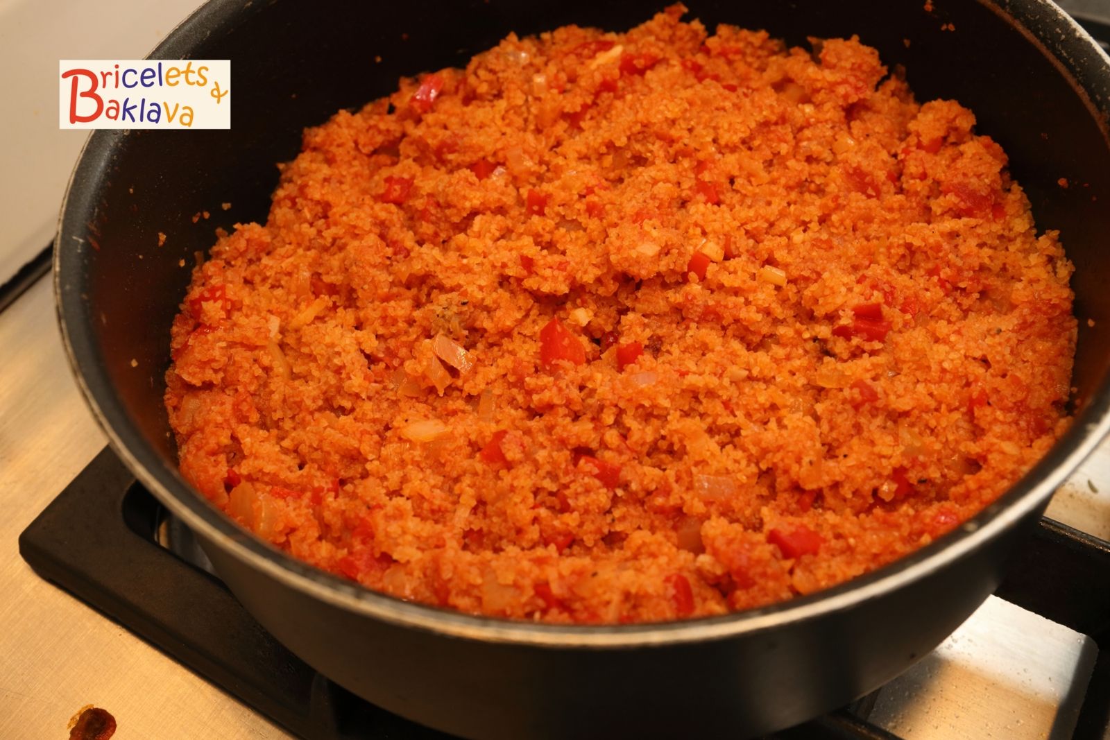 Ce plat est vraiment simple à préparer, vous pouvez vous y lancer les yeux fermés, ou presque. La chose à vraiment faire attention est de ne pas cuire le boulgour, car cette céréale a déjà été cuite et séchée. Si vous le cuisez encore une fois, vous obtiendrez une préparation comme du béton. Pour la tomate, ici j’utilise de la polpa en conserve. Mais en saison vous pouvez opter pour des tomates bien mûres et goûteuses. En prévoir alors 600 g et prolonger la cuisson de la sauce de 5 minutes.