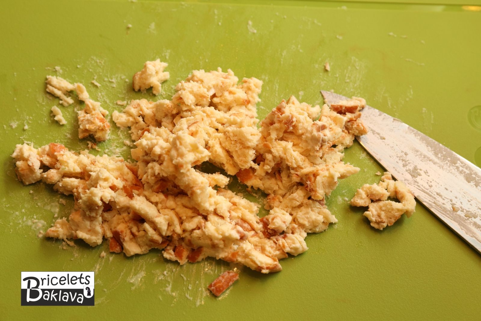Débiter le petit pain (ou un morceau de tresse ou de pain toast) en cubes