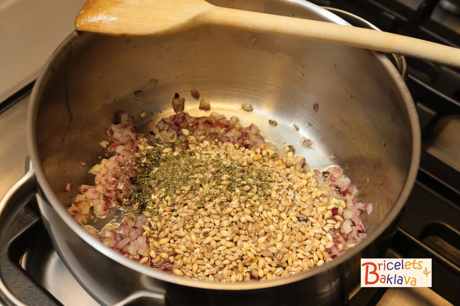 Très peu d’ingrédients sont nécessaires pour la réaliser. Elle pourra être préparée avec différentes céréales, comme le blé, le farro, le riz mais ici j’ai utilisé de l’orge perlé (perlé =débarrassé de son enveloppe) qui va cuire plus rapidement que le blé et nous apportera un moelleux très agréable.