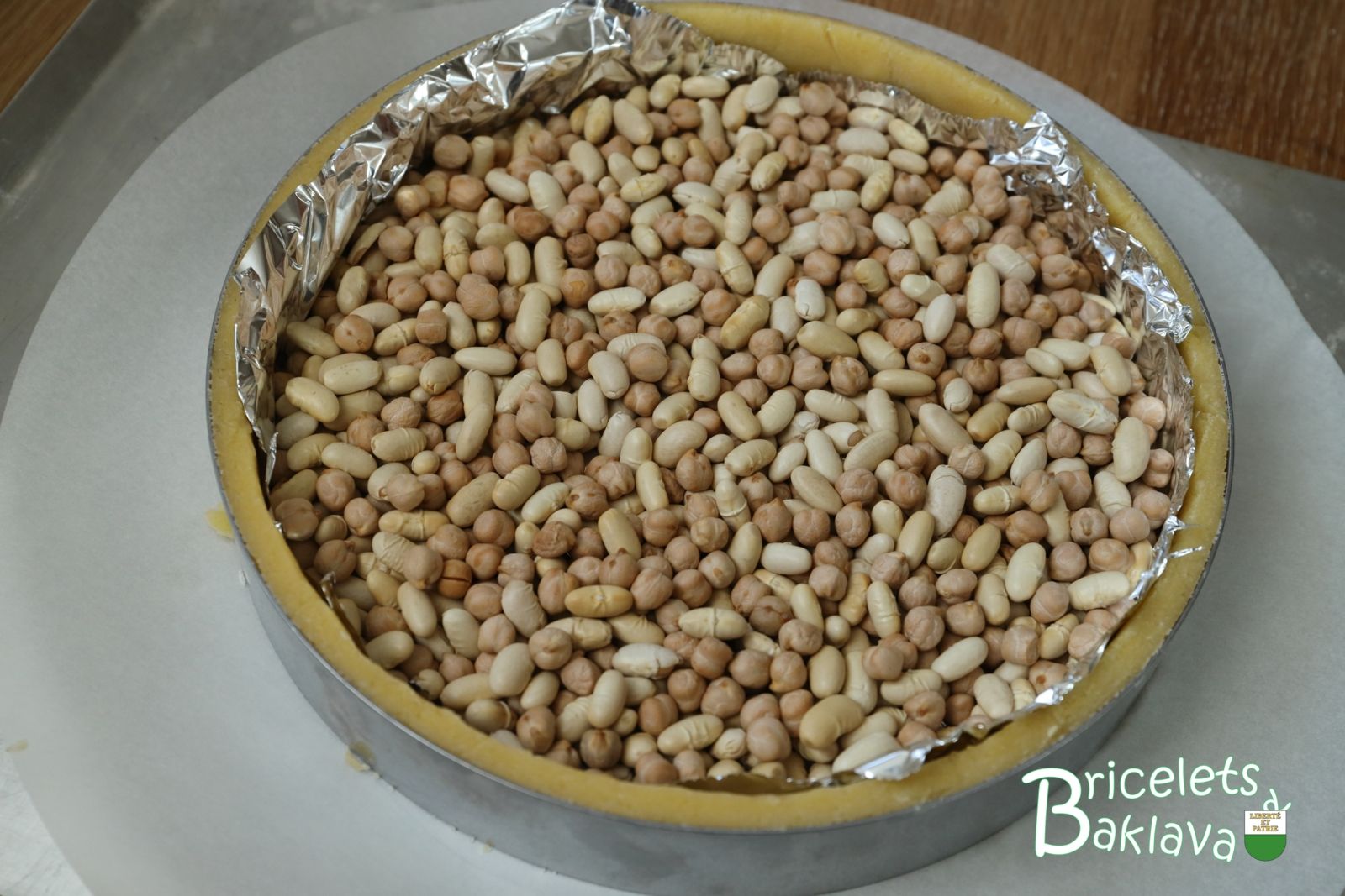 Recette pour 6 à 8 personnes, cercle à tourte de 22 cm ou plaque à gâteau