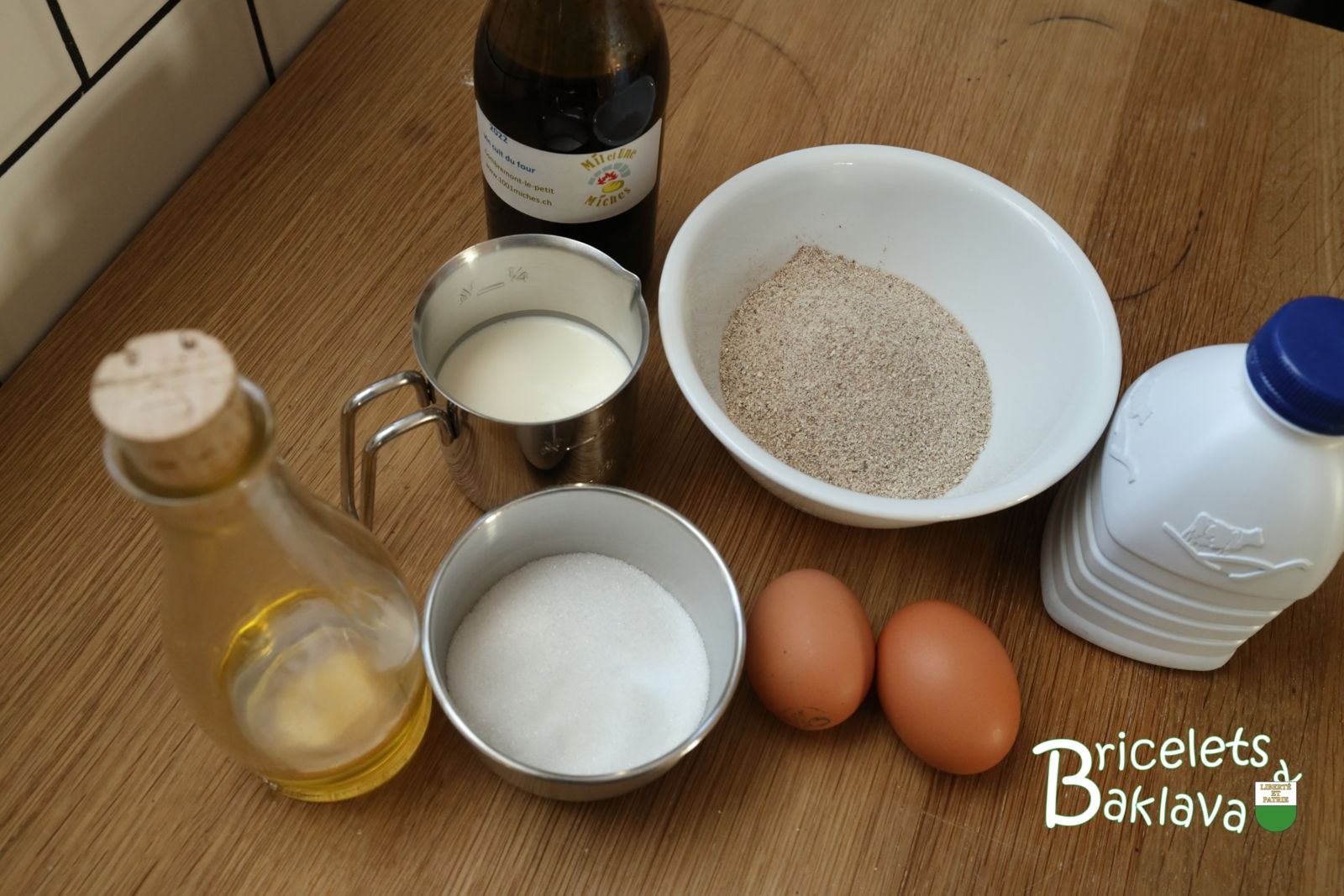Mais tout d’abord, qu’est-ce le nillon de noix ? C’est le résidu sec du pressurage des noix après extraction de l’huile. En France c’est le tourteau, ici en Suisse romande on l’appelle le nillon. Une sorte de galette très dure et compact, que quand nous étions enfants, l’on grignotait comme une friandise. Pour une utilisation en cuisine il faudra donc le râper, dure labeur, mais pour les flémards, vous le trouverez dans le commerce déjà moulu. Cette farine de nillon est très très sèche et il lui faudra beaucoup de liquide afin de pouvoir la travailler. En général on la fait gonfler plusieurs heures dans du lait.