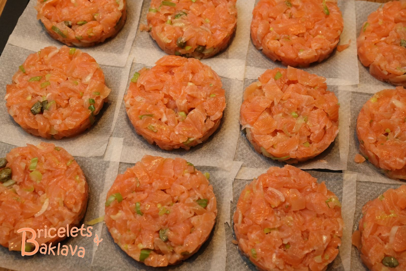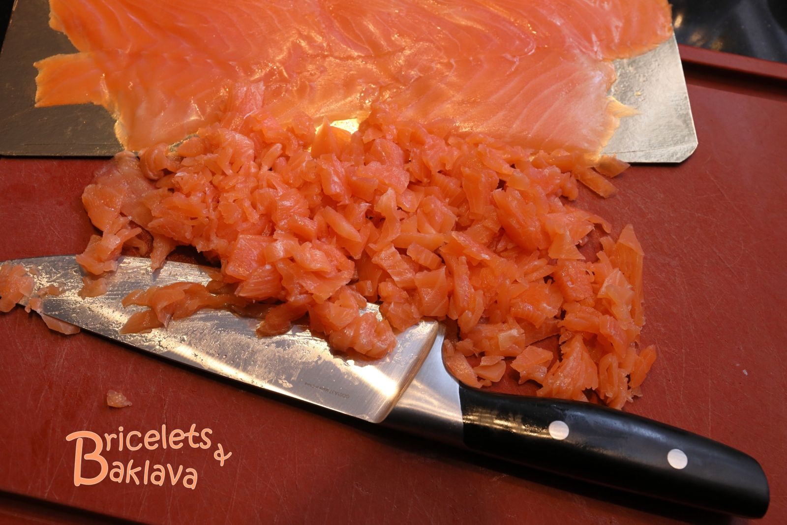Poser maintenant les pavés de saumon fumé