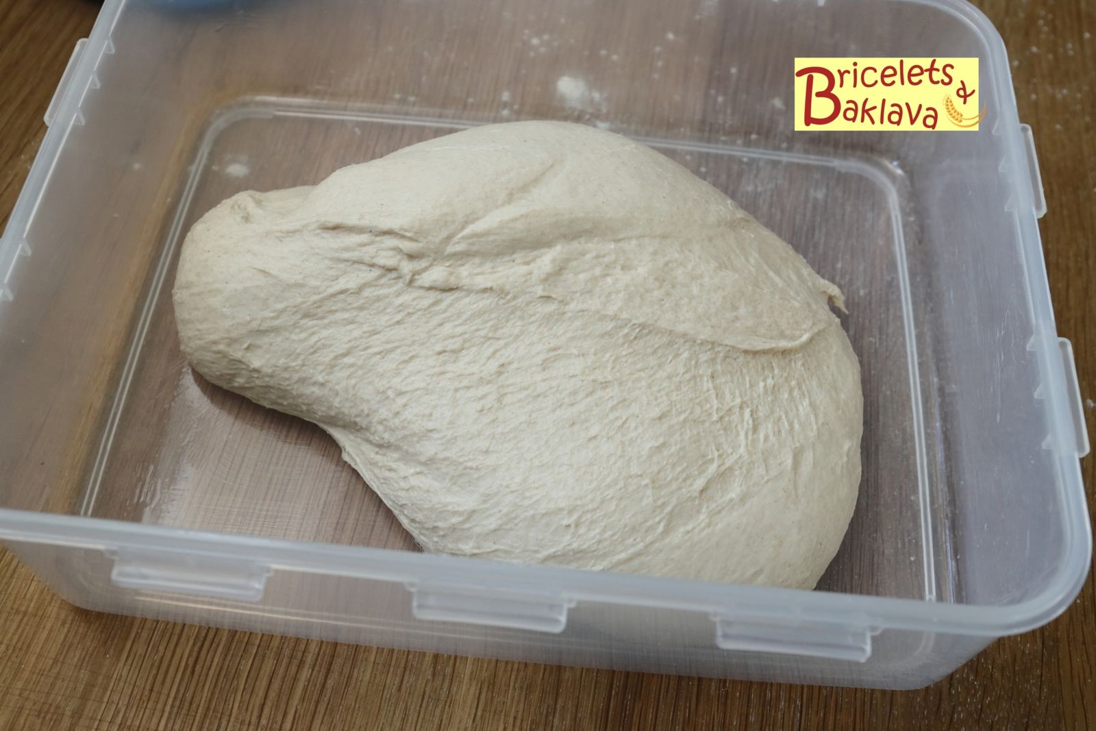 Diviser la pâte en deux pâtons et les façonner en rond ou en long et les déposer dans un banneton fariné, soudure en dessous.