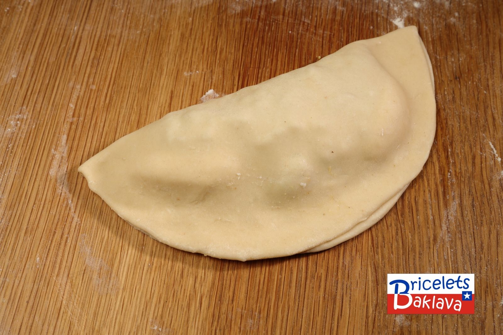 Rabattre la pâte sur la garniture afin de former un demi-cercle en faisant bien attention d’évacuer le maximum d’air et bien souder le pourtour de pâte.