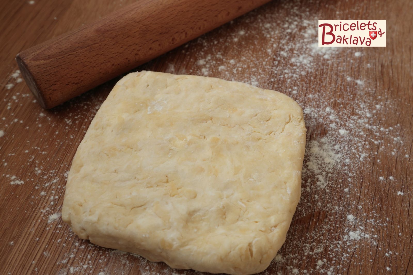 Le plier encore une fois en trois comme auparavant, vous venez de réaliser le second tour et il y en aura 5 au total. L’emballer dans un film et le réserver 30 minutes au frigo.