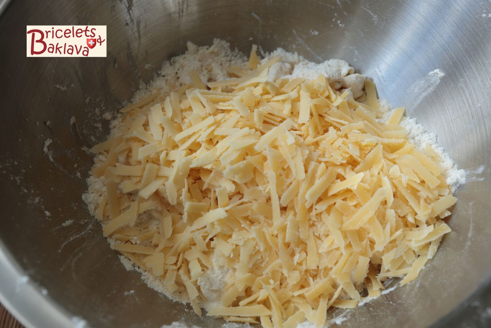 Pour commencer il faudra détailler le beurre à température ambiante en petits cubes et râper le fromage à la grosse grille.
