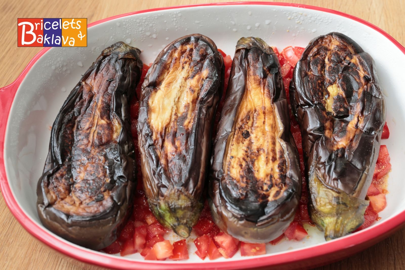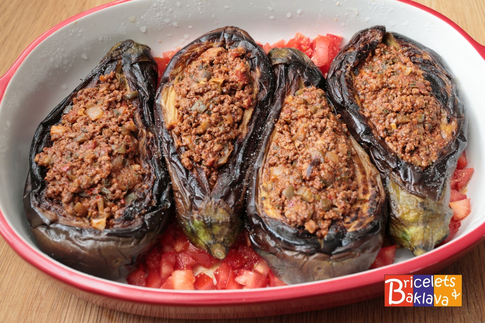 On pourra aussi mettre l'excédent de farce tout autour des aubergines. Enfourner à une température de 190°C, pour environ 1 heure ou jusqu'à ce que les aubergines soient tendres et fondantes.
