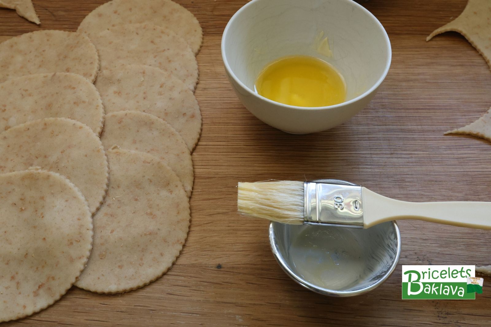 Humecter le dessus des pâtés et coller les rondelles.